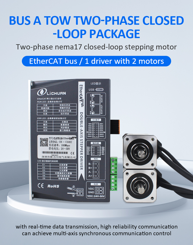 EtherCAT 2Phase Nema24 4-Achsen-DC-Schrittmotortreiber-Kit mit geschlossenem RegelkreisNeue Produkte EtherCAT 2Phase Nema17 2-Achsen-DC-Schrittmotortreiber-Kit mit geschlossenem Regelkreis, hergestellt in China mit CE/ROHS von LICHUAN®. Unsere Fabrik ist ein berühmter Hersteller und Zulieferer von EtherCAT 2Phase Nema17 2-Achsen-DC-Schrittmotortreibersätzen mit geschlossenem Regelkreis in China. Unser Produkt zeichnet sich durch hohe Qualität, Langlebigkeit, stabilen Betrieb und einen günstigen Preis aus. Und wir bieten maßgeschneiderte Dienstleistungen.
