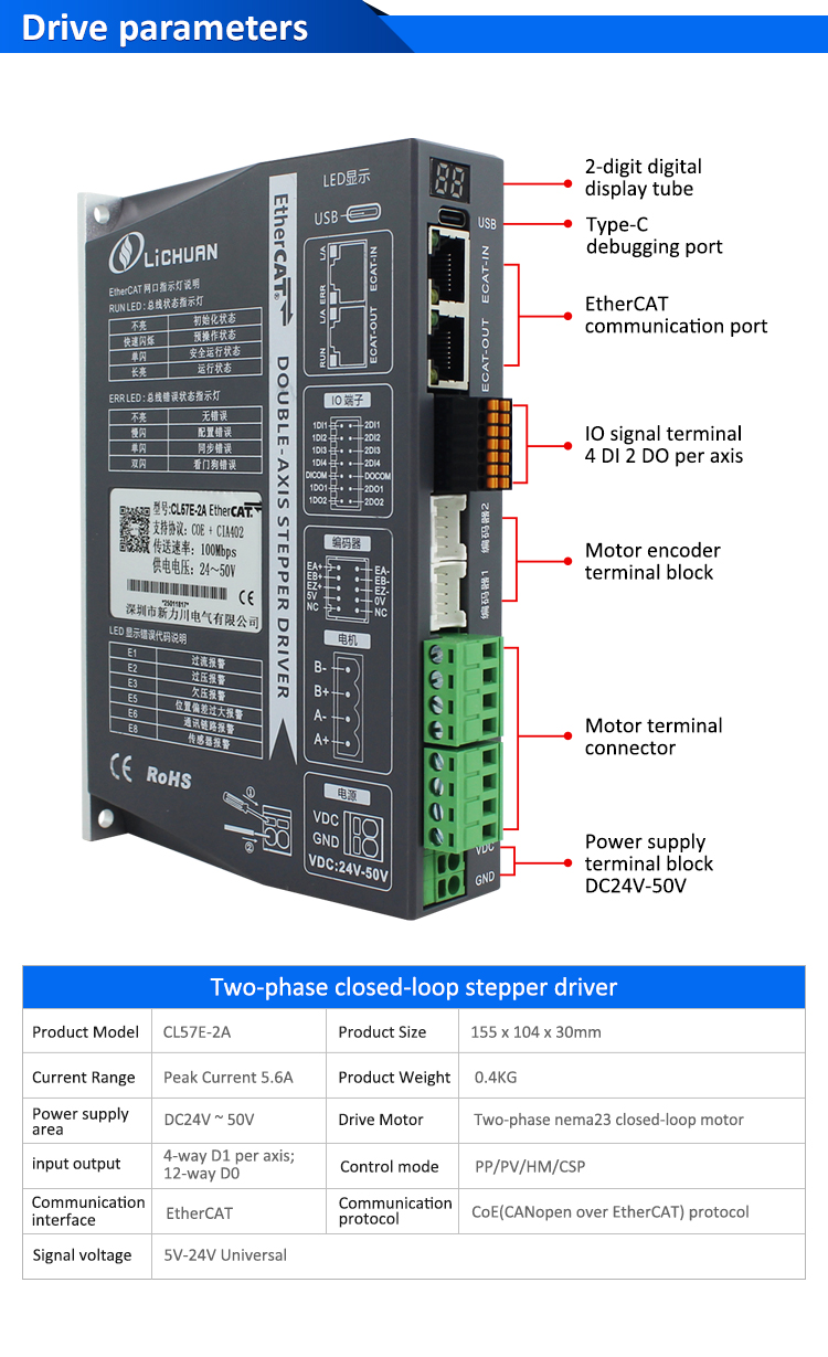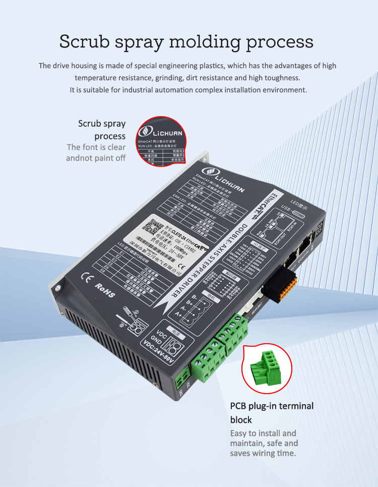 EtherCAT 2Phase Nema24 4-Achsen-DC-Schrittmotortreiber-Kit mit geschlossenem RegelkreisNeue Produkte EtherCAT 2Phase Nema23 2-Achsen-DC-Schrittmotortreiber-Kit mit geschlossenem Regelkreis, hergestellt in China mit CE/ROHS von LICHUAN®. Unsere Fabrik ist ein berühmter Hersteller und Zulieferer von EtherCAT 2Phase Nema23 2-Achsen-DC-Schrittmotortreibersätzen mit geschlossenem Regelkreis in China. Unser Produkt zeichnet sich durch hohe Qualität, Langlebigkeit, stabilen Betrieb und einen günstigen Preis aus. Und wir bieten maßgeschneiderte Dienstleistungen.