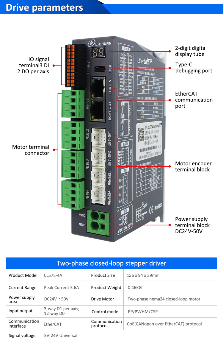 EtherCAT 2Phase Nema24 4-Achsen-DC-Schrittmotortreiber-Kit mit geschlossenem RegelkreisNeue Produkte EtherCAT 2Phase Nema24 4-Achsen-DC-Schrittmotortreiber-Kit mit geschlossenem Regelkreis, hergestellt in China mit CE/ROHS von LICHUAN®. Unsere Fabrik ist ein berühmter Hersteller und Zulieferer von EtherCAT 2Phase Nema24 4-Achsen-DC-Schrittmotortreibersätzen mit geschlossenem Regelkreis in China. Unser Produkt zeichnet sich durch hohe Qualität, Langlebigkeit, stabilen Betrieb und einen günstigen Preis aus. Und wir bieten maßgeschneiderte Dienstleistungen.