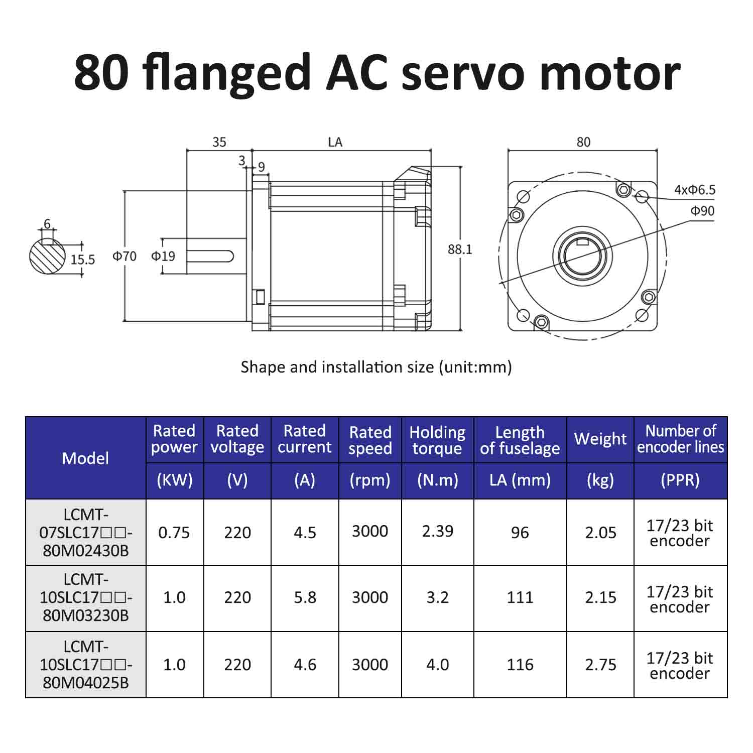 | Motormodell | LCMT-07SLC17-80M02430B | LCMT-10SLC17-80M03230B | LCMT-10SLC17-80M04025B |