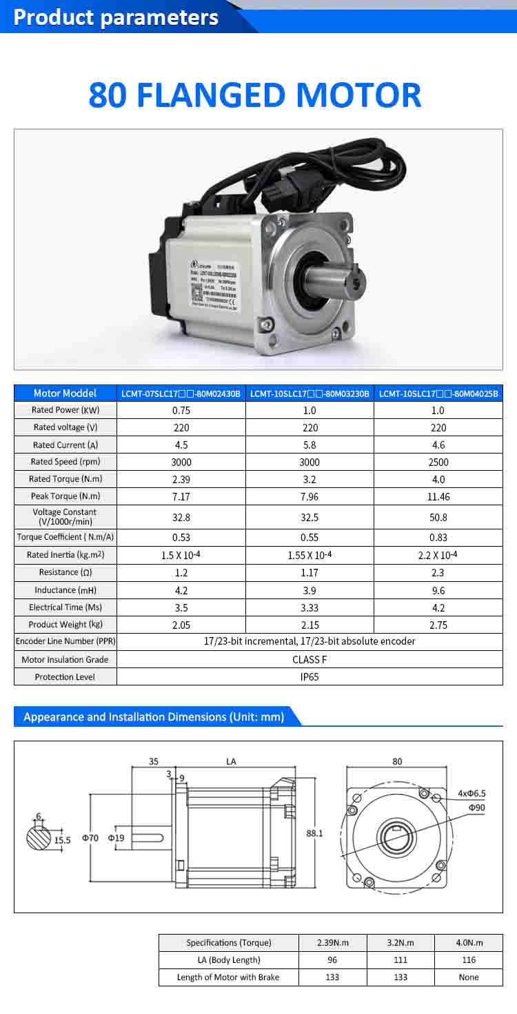 Lichuan AC-Servomotor-Treiber-Kit A8, hohe Genauigkeit, STO ABZ, 750 W, 0,75 kW, 2,39 Nm, 220 V, 4,5 A, 2500/3000 U/min, IP65