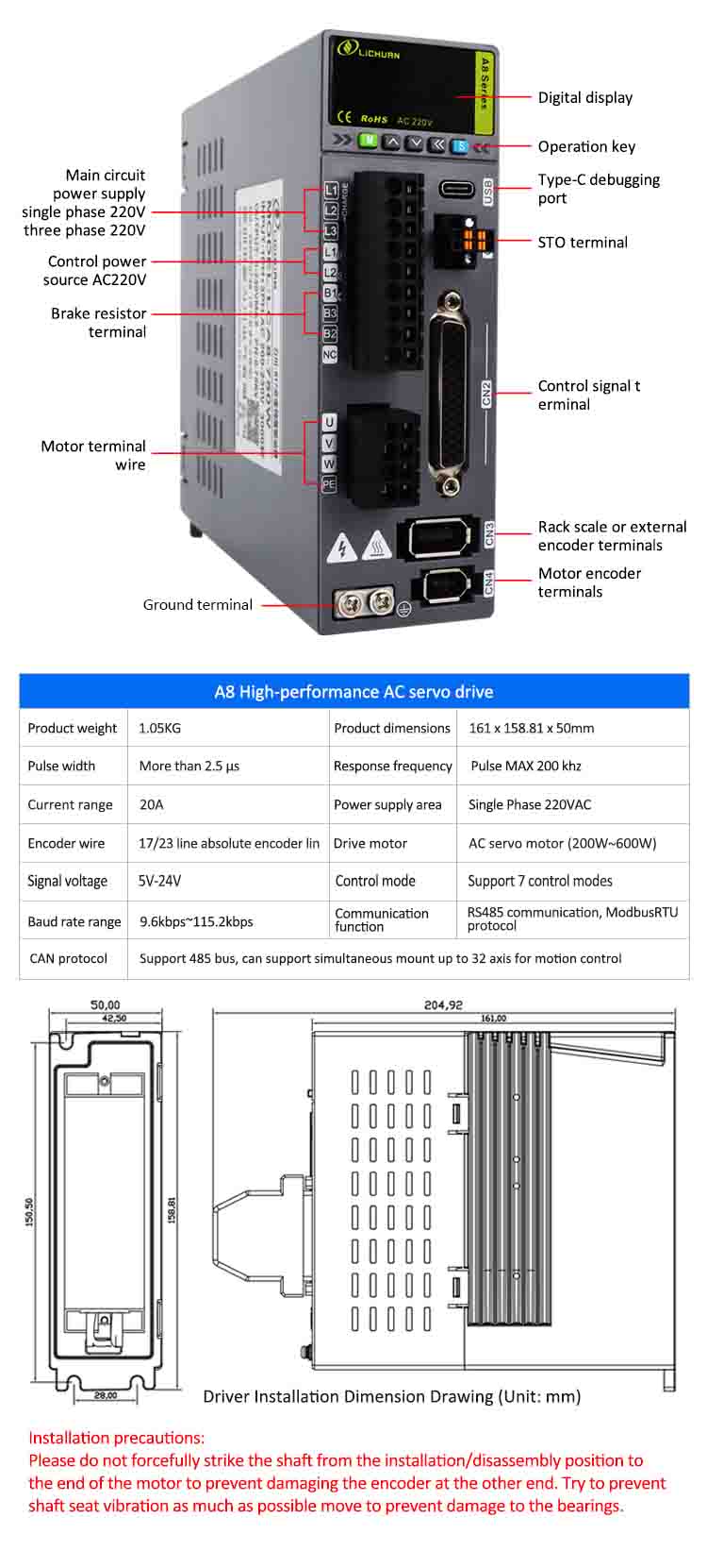 Produktname:Lichuan A8 Hochpräzises STO ABZ AC-Servomotortreiber-Kit