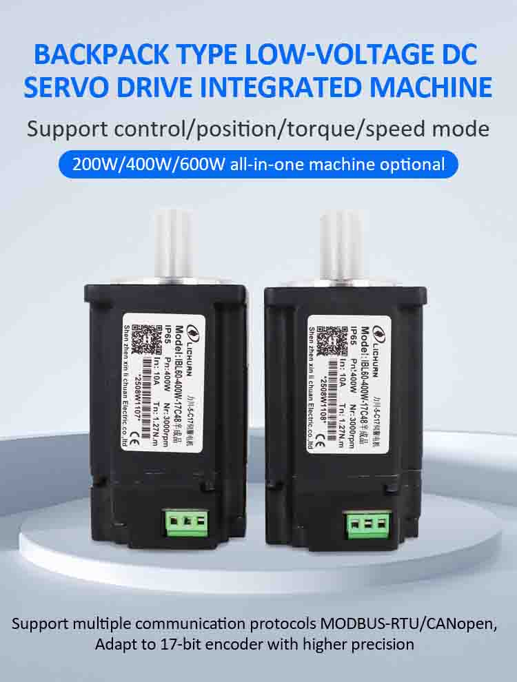 DerTreiber für integrierte Servomotoren von Lichuanist eine fortschrittliche All-in-One-Bewegungssteuerungslösung, die einen Hochleistungs-Servomotor, einen Servotreiber und einen Encoder in einer einzigen kompakten Einheit integriert. Dieser integrierte Servomotortreiber unterstützt die Steuermodi Pulse, RS485 und CANopen und ist für hochpräzise, hochzuverlässige Automatisierungssysteme konzipiert. Mit Leistungsoptionen von 200 W bis 1000 W ist es ideal für industrielle Automatisierung, Robotik, AGV-Systeme und intelligente Geräte.