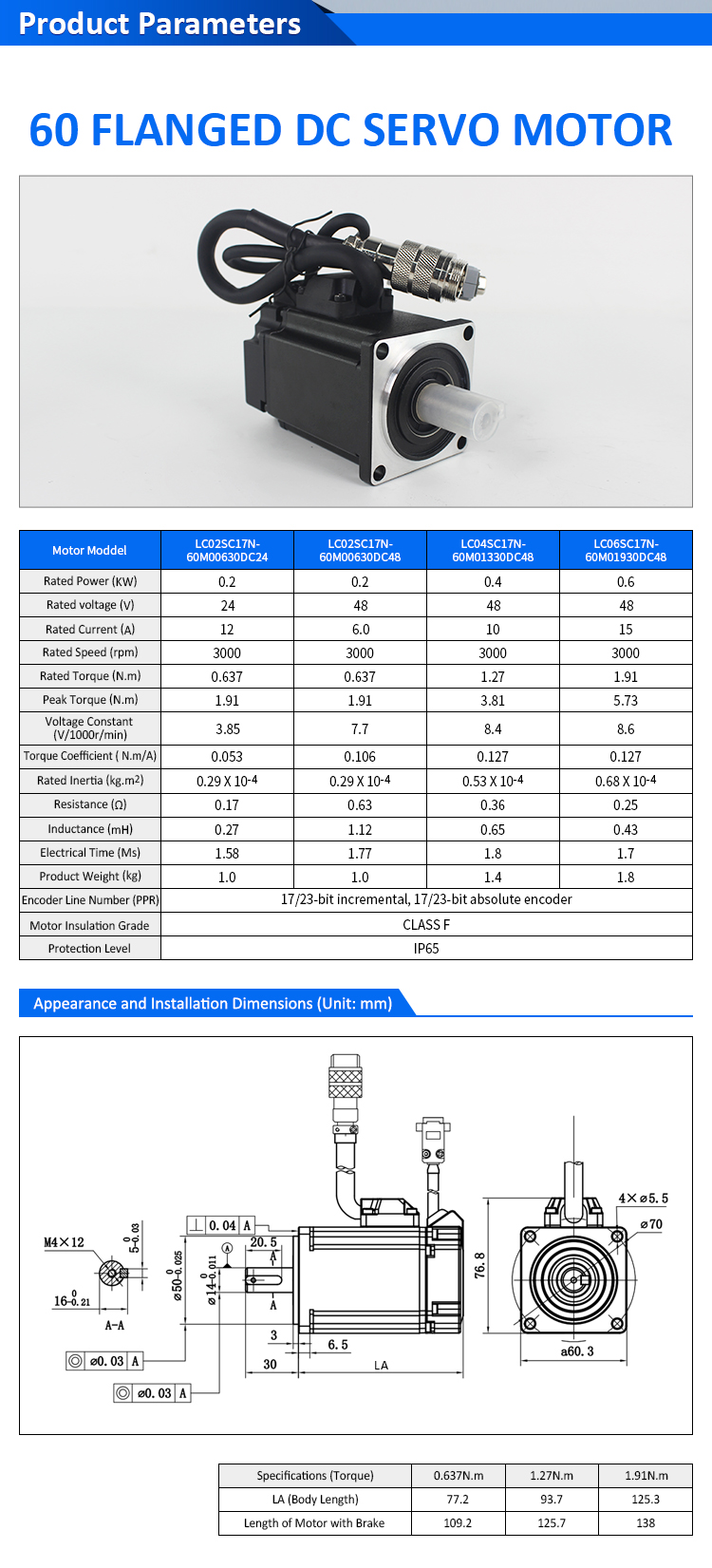 Pulse/RS485/CANopen/EtherCAT 60 FLANSCH-400-W-Niederspannungs-DC-Servomotortreiber-Kit